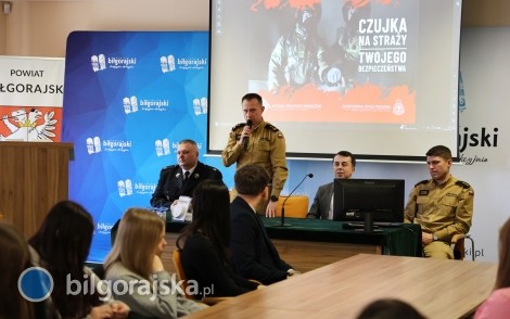 W piątek 13 lutego w Starostwie Powiatowym w Biłgoraju odbyła się konferencja prasowa poświęcona bezpieczeństwu mieszkańców oraz profilaktyce przeciwpożarowej. W spotkaniu wzięli udział starosta powiatu biłgorajskiego Andrzej Szarlip, komendant powiatowy Państwowej Straży Pożarnej w Biłgoraju bryg. Tomasz Taradyś, prezes Zarządu Powiatowego Ochotniczej Straży Pożarnej druh Jan Małysza oraz młodzieższkolna wraz z nauczycielami.
