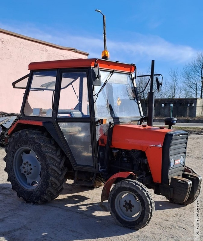 Ciągnik ma ważne ubezpieczenie OC do 8 lipca 2026 roku oraz aktualne badanie techniczne do 26 października 2026 roku.